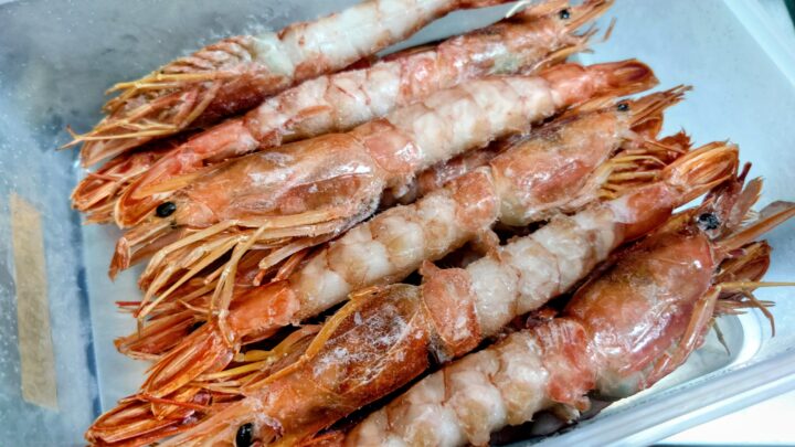 具材は、有頭海老2尾と、いんげん2本のみ。下処理をしておいた海老に軽く白ワインと塩を振ってフライパンでソテーします。海老が香ばしく焼けてきたら、インゲンも入れ、火を入れすぎないよう歯切れと青い香りを残す程度に火を通します。